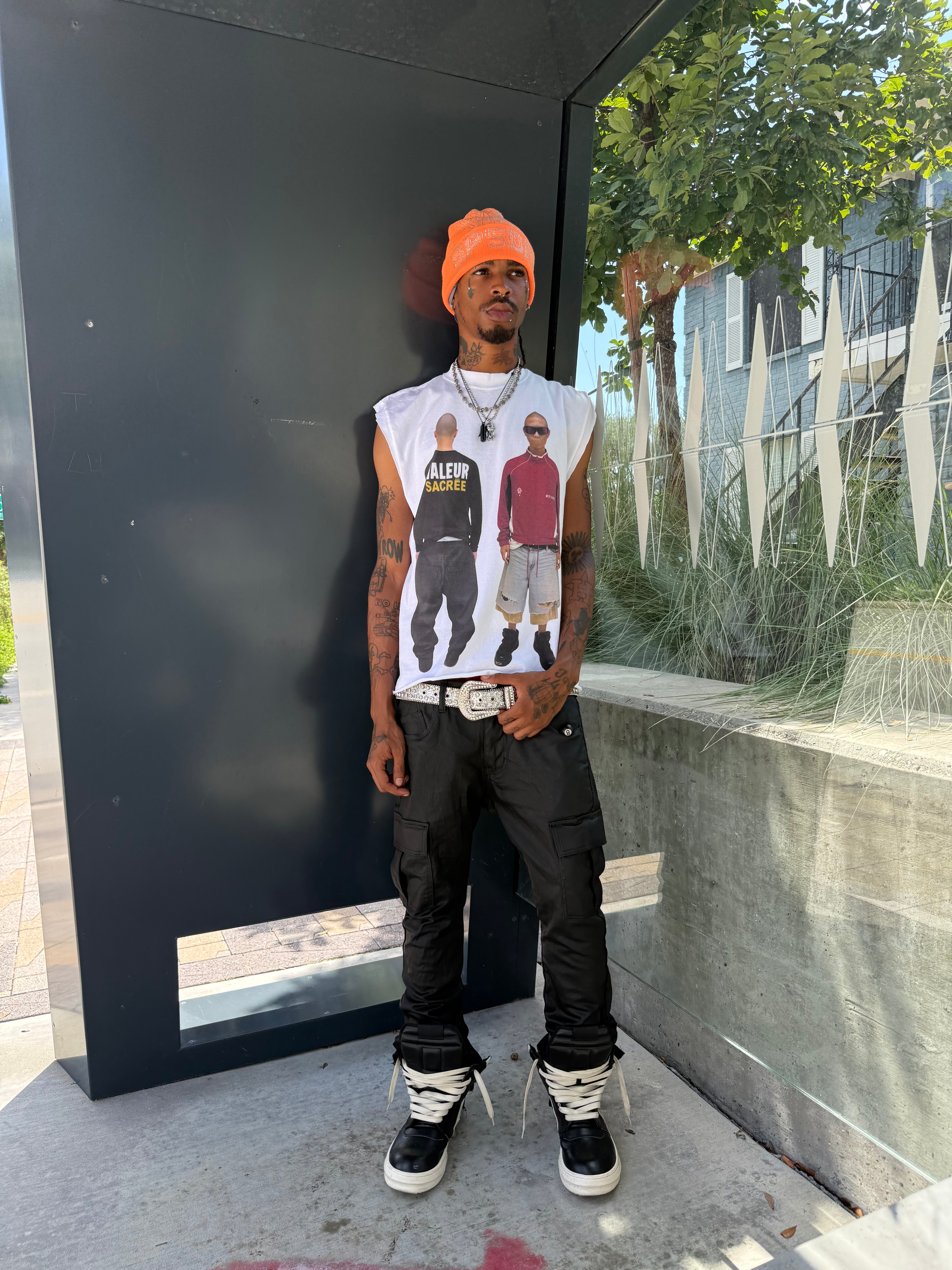 Material: 100% cotton, 275 GSMFit: Boxy cut, sleeveless raw-edge finishGraphics: Front DTG print – vintage figures li...